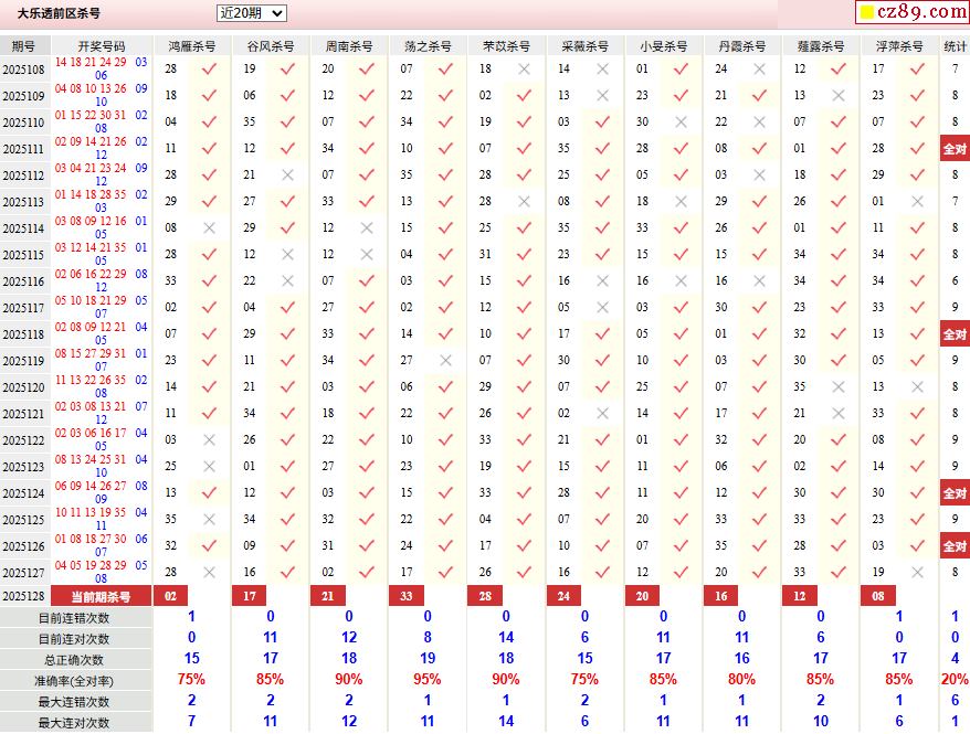 > 25年128期彩票专家超级大乐透前后区杀号图表