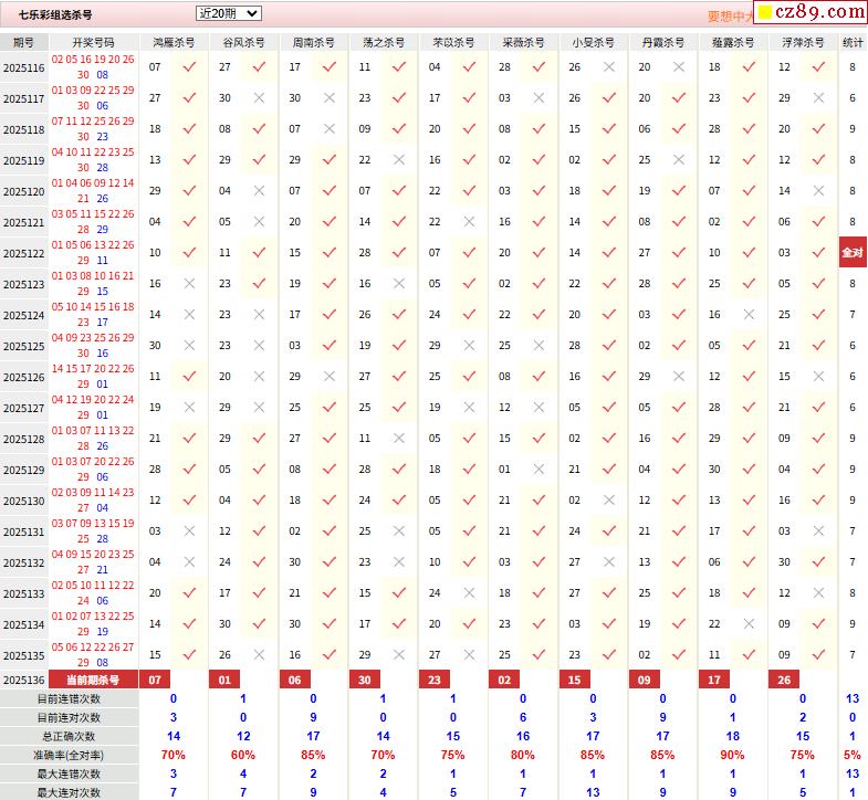 25年136期彩票专家福彩七乐彩杀号图表
